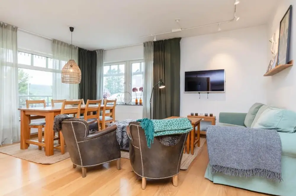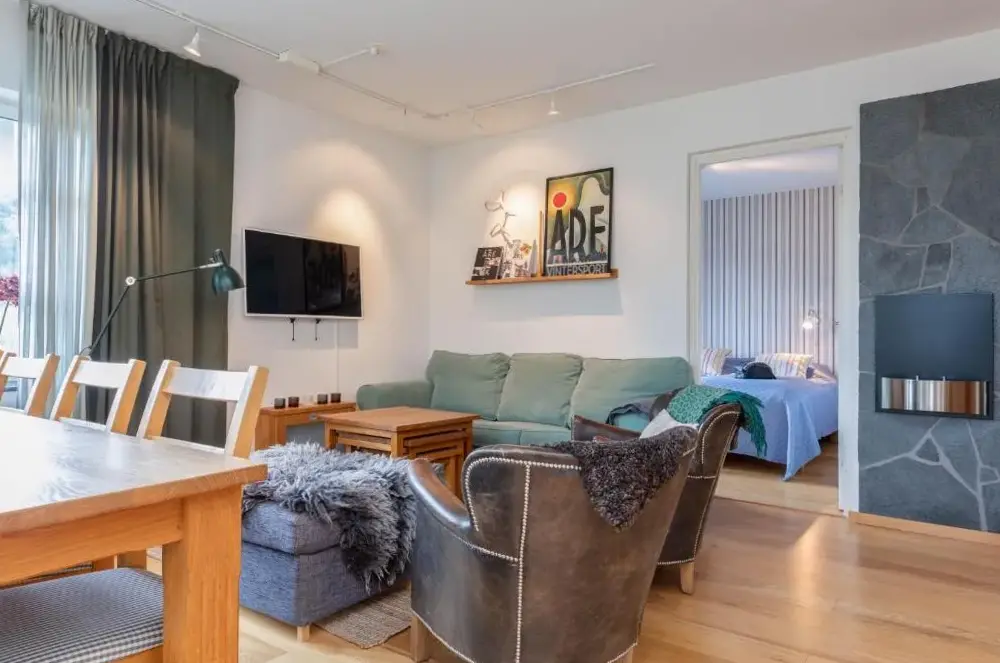 Trevlig och bred lägenhet 5 minuter från sluttningarna och staden.